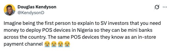 Predictably, this reignited the favourite pastime of Nigerian tech Twitter: dunking on local VCs. Why didn’t they back this? Where were they? Do they even have vision?