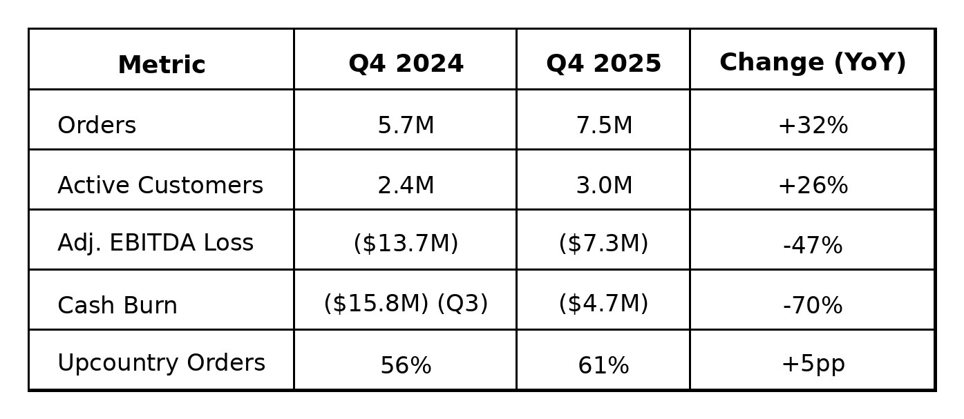 It’s also a sentence that contains the word “finally,” which is doing a lot of heavy lifting. Jumia is targeting adjusted EBITDA breakeven and positive cash flow in Q4 2026, and full-year profitability in 2027. The company says its existing $77.8 million in liquidity is sufficient to get there without raising additional capital.