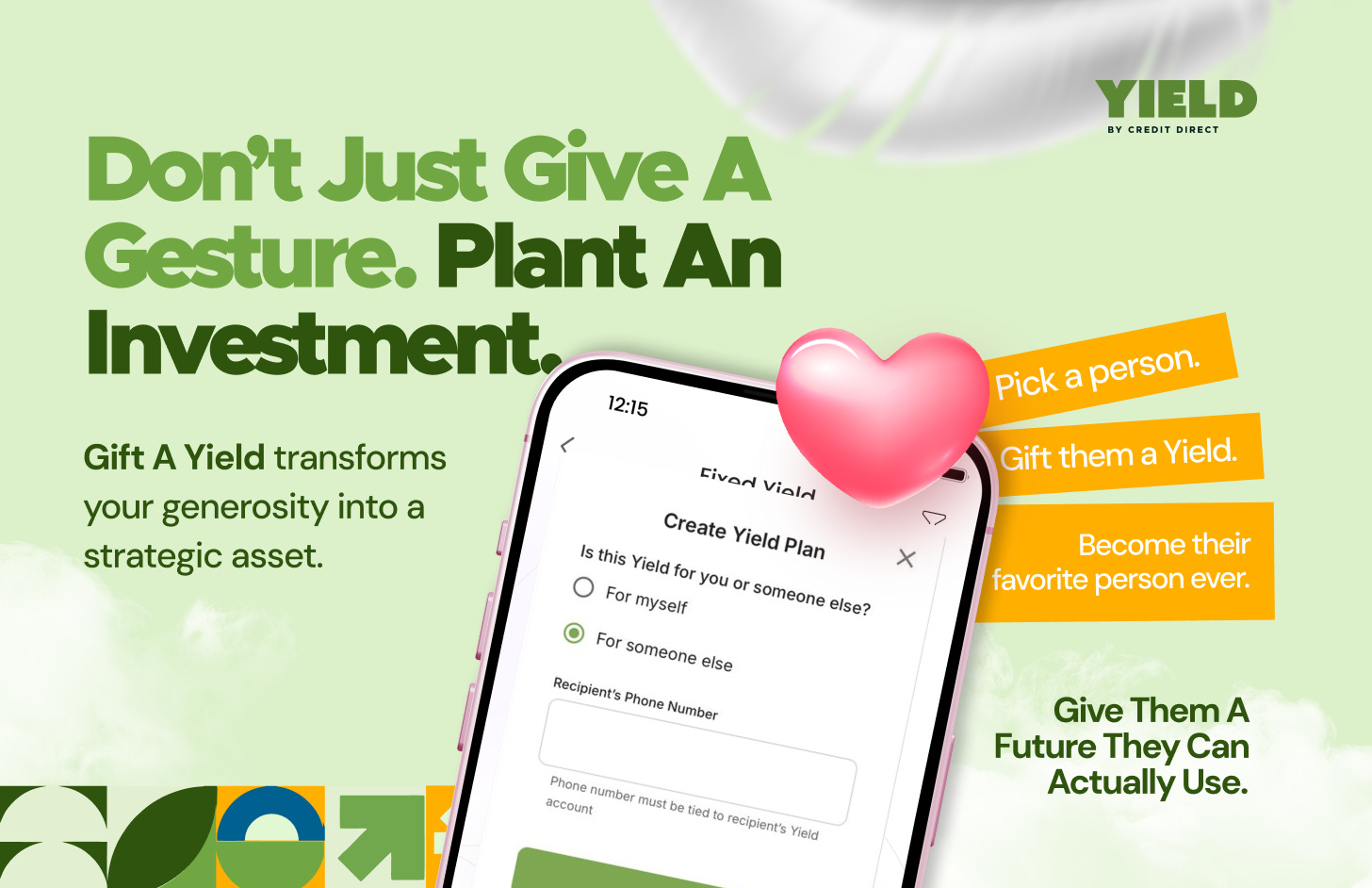 By gifting a Yield plan to someone, you aren’t just giving money; you’re giving them a future they can actually use. While other gifts lose value, a Yield plan compounds. It’s strategic, it’s thoughtful, and it’s the only gift that literally pays them back. Give them a financial head start today.